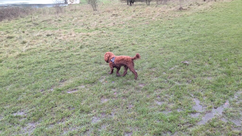 Then he decided he was going full rogue. Trail walking? No. Trail zoomies. Meanwhile, I stuck to the sensible paths like a normal human who doesn’t want to face‑plant into a puddle.